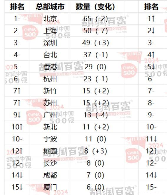 2024胡润中国500强的城市排名 数据来源:胡润研究院