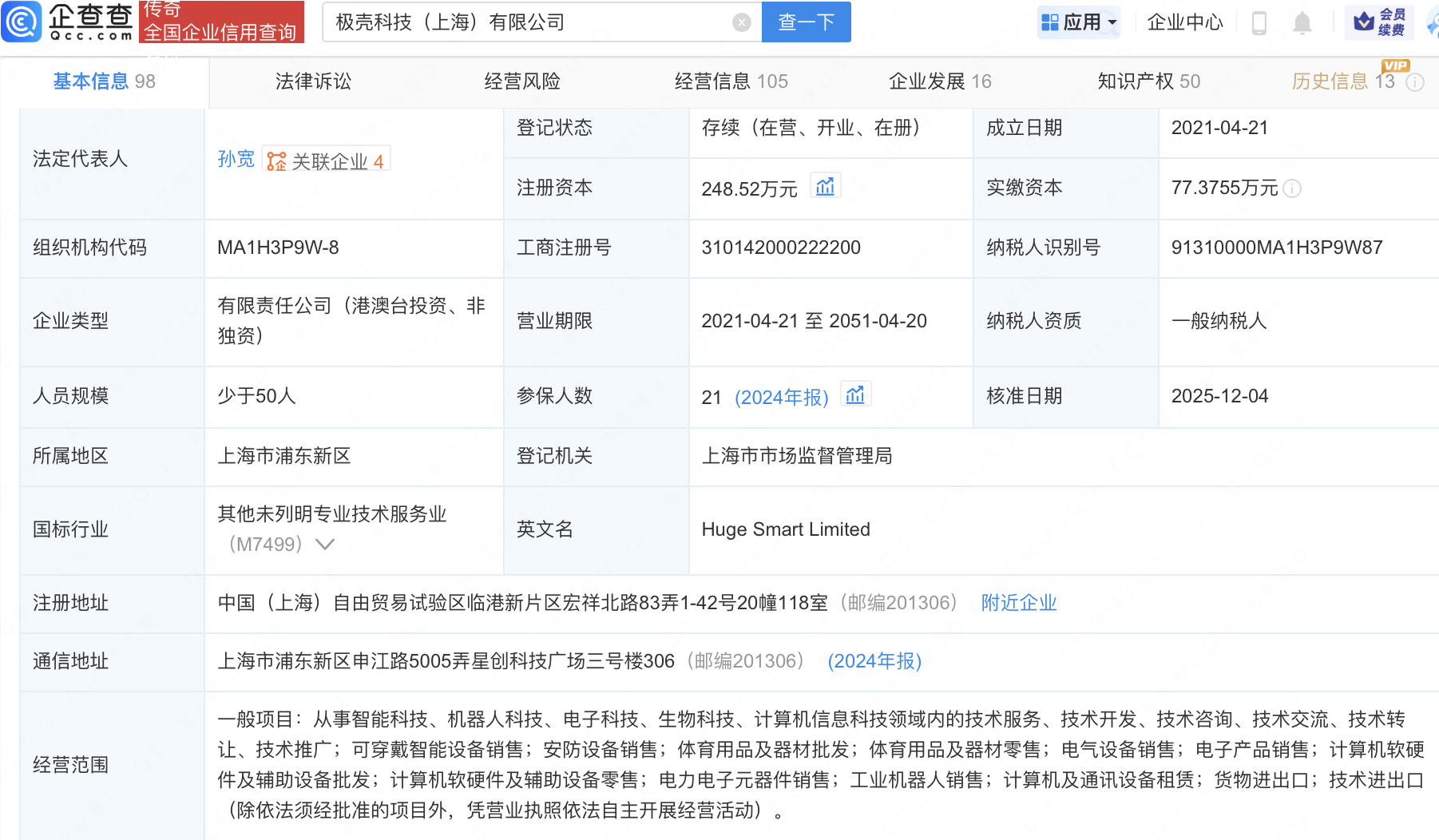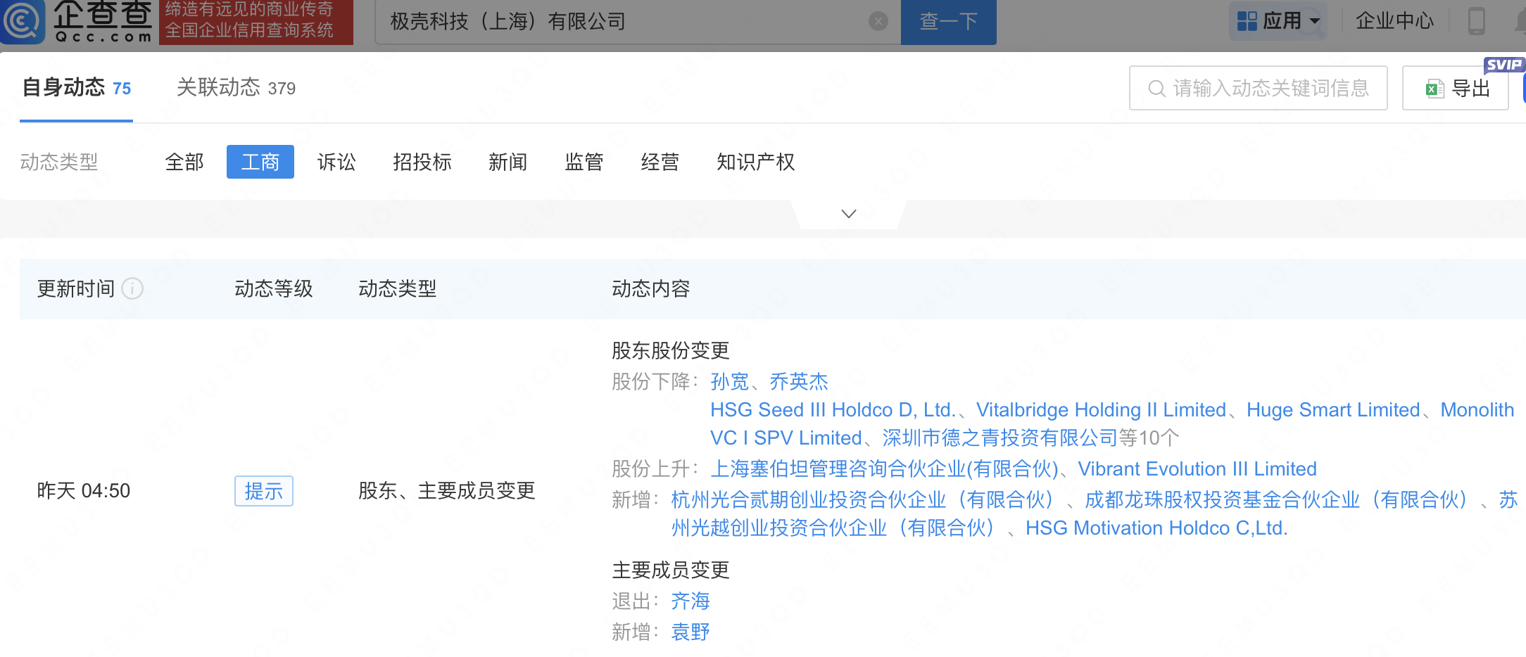 近日,极壳科技(上海)有限公司发生工商变更,新增美团旗下成都龙珠股权投资基金合伙企业(有限合伙)等为股东,同时注册资本增至248.52万元。企查查信息显示,该公司成立于2021年个人配资炒股杠杆,经营范围包含:从事智能科技、机器人科技、电子科技、生物科技、计算机信息科技领域内的技术服务等。公开信息显示,极壳科技是一家消费级外骨骼企业。